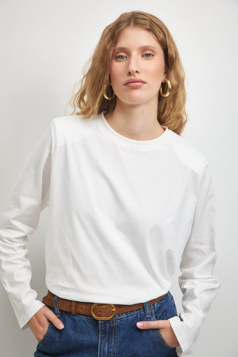 חולצת ספייסי פנקייק כריות כתפיים נשלפות ארוכה לבנה