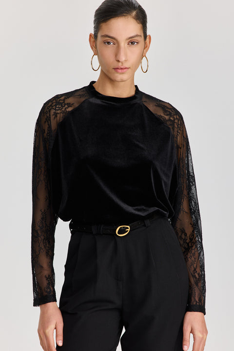 חולצת קטיפה league שרוולי תחרה שחורה