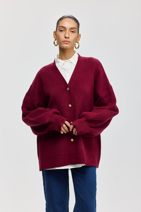 קרדיגן פרזנט סוודר שרוולים תפוחים בורגנדי