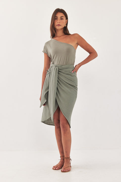 חצאית מעטפת מונאקו פשתן פסים ירוקה