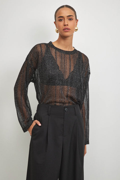 חולצה גליטר טקסטורת פסים ארוכה שחורה