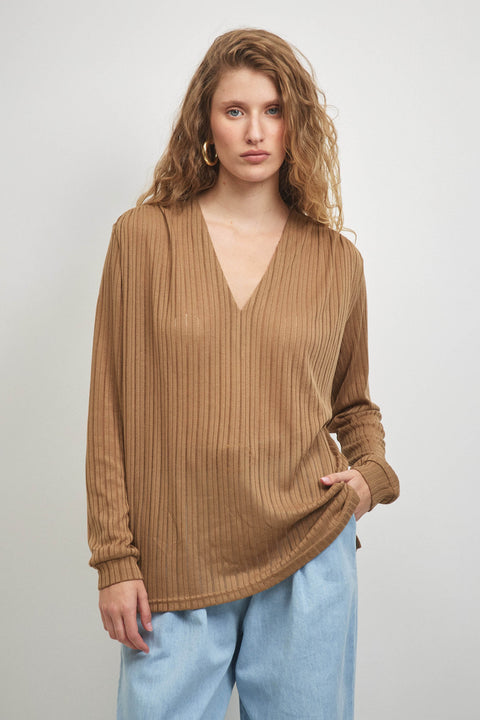 חולצת וי כיווצים ארוכה מוקה