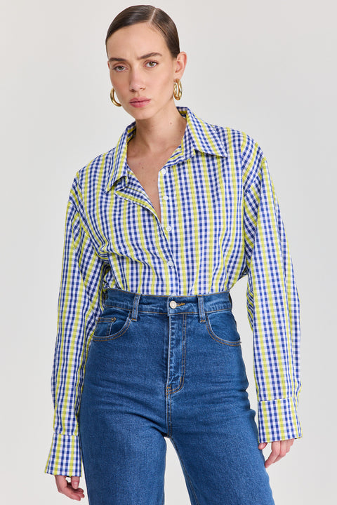 חולצה מכופתרת משבצות בגזרת אוברסייז מושלמת, עם קפלים עשירים בשרוולים.