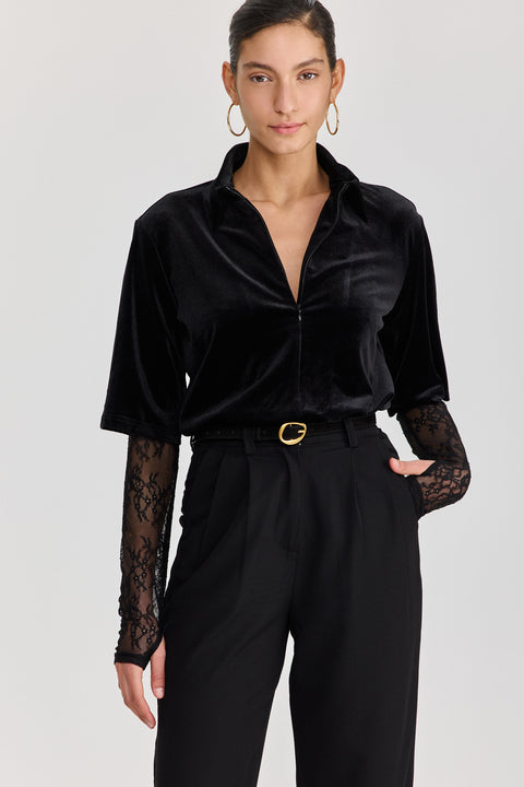 חולצת קטיפה ספרינג רול שרוולי תחרה שחורה