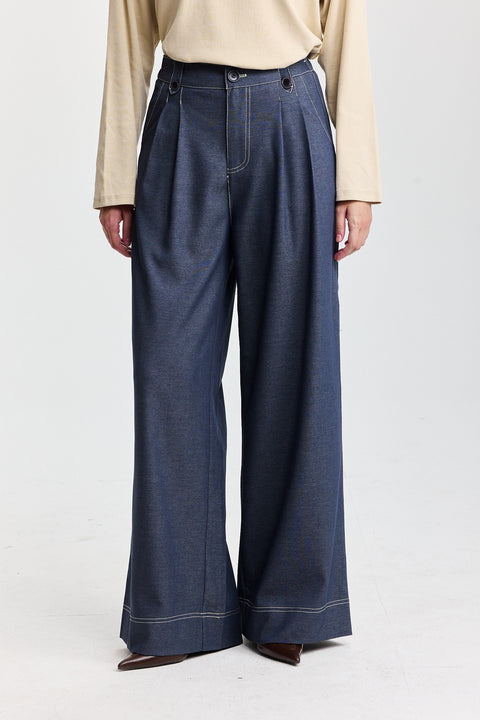 מכנסיים מחוייטים מילקשייק תיפורים קונטרסט כחול עמוק