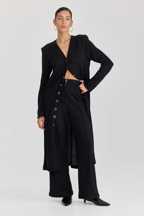 מכנסיים מחוייטים סריג וויסקי רוכסן גומי שחורים