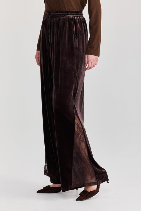 מכנסיים ספיריט מתרחבים גומי קטיפה משולש תחרה חום שוקולד