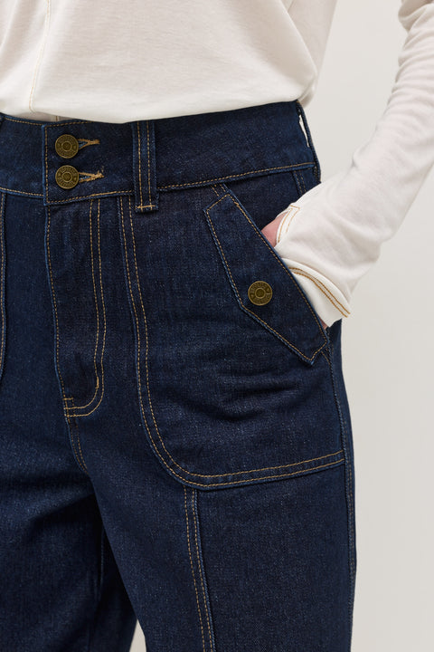 מכנסי ג'ינס קאנולי דיטייל תיפורים כחול כהה