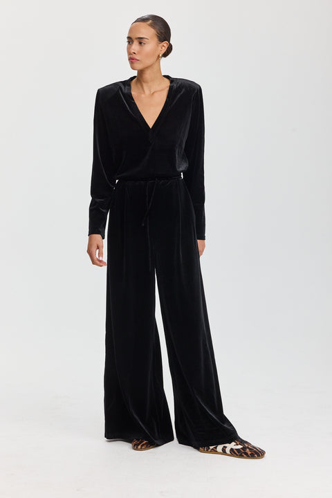 מכנסי ספיריט מתרחבים קטיפה דיטייל מחוייט שחור