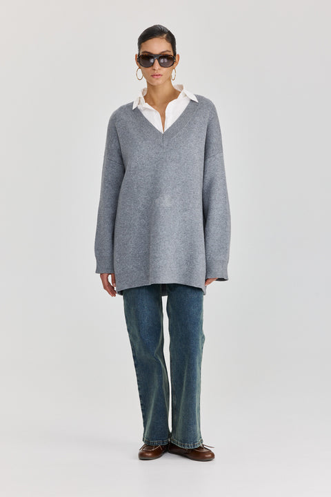 סוודר טוניקה פרזנט מפתח וי אפור