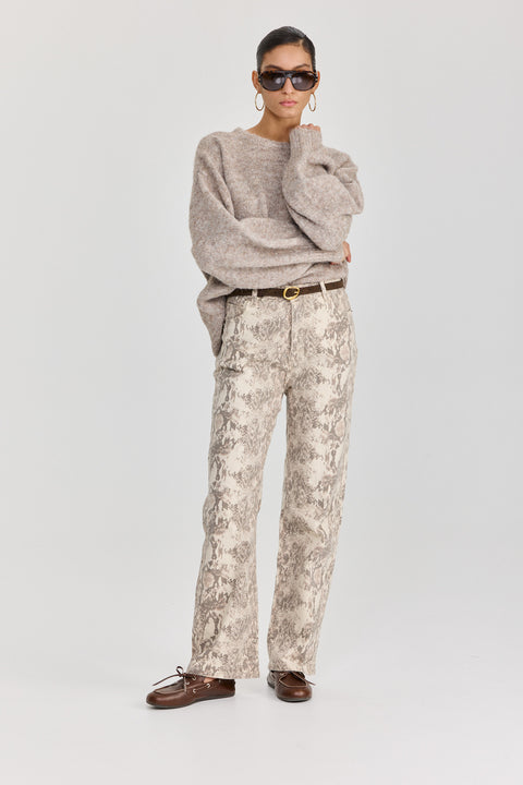 מכנסי ג'ינס בגזרה גבוהה, צללית ישרה, מבד עם מתיחה לנוחות מירבית והדפס נחש אייקוני ומשדרג כל לוק.